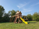 Детям постарше безусловно понравится яркая двухволновая горка со скатом 2.7 метра. А для активных и подвижных в этой площадке предусмотрен устойчивый модуль с металлическим турником.
