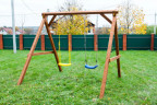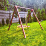 Деревянные качели с металлическими элементами крепления "Выше Всех" надежны, красивы и точно понравятся детям.